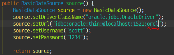 예를 들어 이와 같이 데이터베이스 접근 소스를 받아 올경우 setUrl의 값이 sql developer에 설정한 값과 동일한지 확인해야한다.